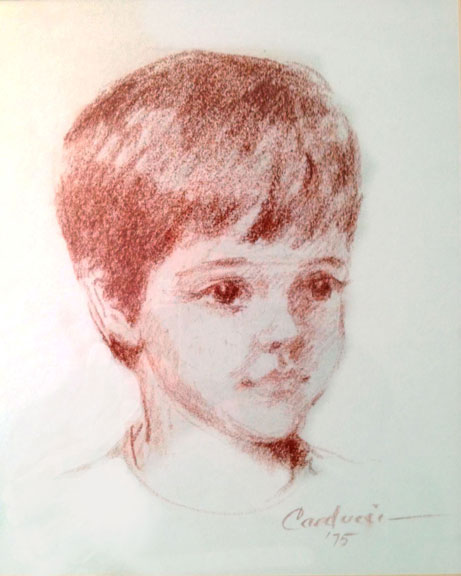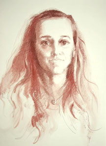 Jenny Tinker 1975 Red conte crayon on 12" x 9" cream paper Private Collection See side by side with Jen Shockley as an adult