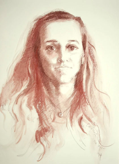 Jen Shockley 2014 and (nee Tinker ) 1973 Both portraits in red conte crayon on 12" x 9" cream paper Private Collection