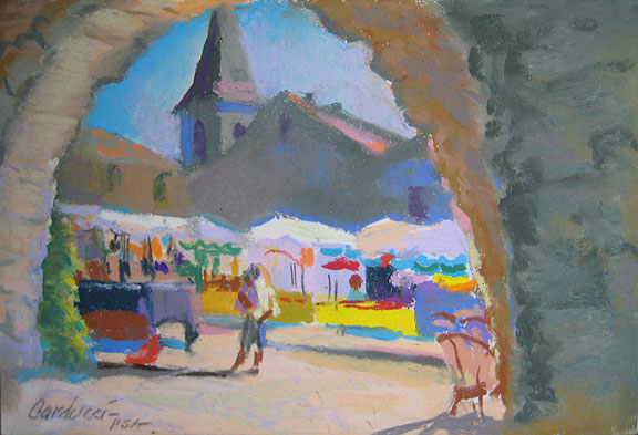 Morning Market, Montpazier Pastel on 6" x 9" Wallis Paper 2010 Spring Workshop in Southern France Contact the artist for price and availability