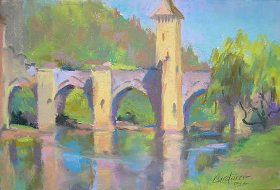 Pont Valentre, Cahors, Morning Pastel on 6" x 9" Wallis Paper 2010 Spring Workshop in Southern France Contact the artist for price and availability