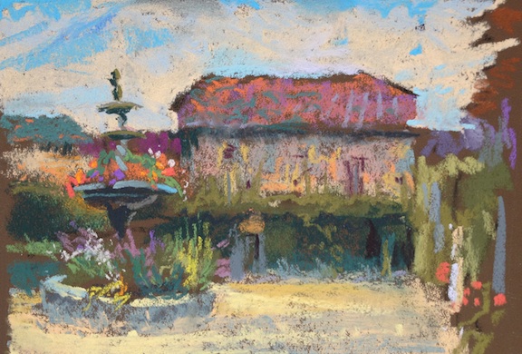 Traditional Clos Architecture — Le Quercy, France Pastel on 6.5" x 10" Canson Touch paper August 2014 Workshop in France, painted left-handed Contact the artist for pricing and availability