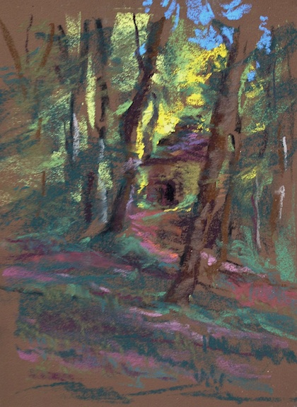 Roman Era Shepherd's Hut — Domaine du Haut Baran, France Pastel on 10" x 6.5" Canson Touch paper August 2014 Workshop in France, painted left-handed Contact the artist for pricing and availability