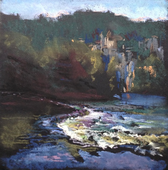 The Lot River at Sancyrq — Lapoppie, France Pastel on 10" x 10" Canson Mi Tientes paper on board August 2014 Workshop in France, painted left-handed Contact the artist for pricing and availability