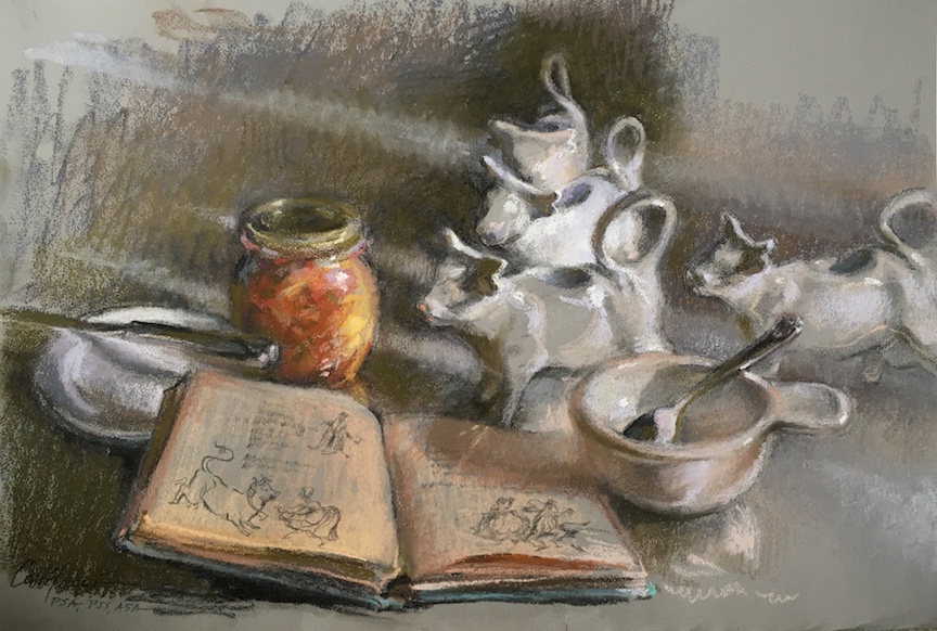 An Embarrassment of Alderneys (“The King’s Breakfast”) Pastel, charcoal, and iridescent pastel on 14" x 21" Canson Mi-tientes Touch paper Contact the artist for price and availability