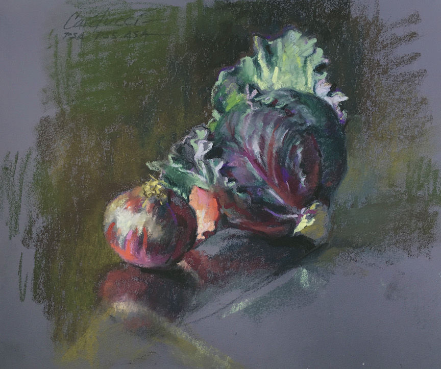 Charcoal, pastel and iridescent pastel on 12" x 12" Canson Mi-tientes Touch paper
