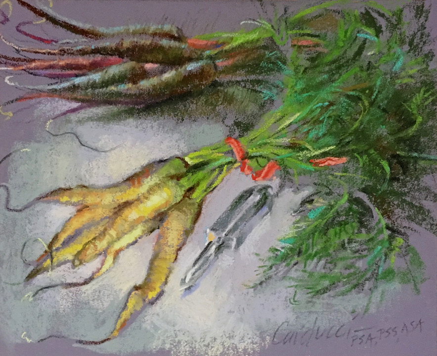 Yellow and Purple Carrots Pastel and charcoal on Canson Mi-teintes Touch paper Contact the artist for price and availability