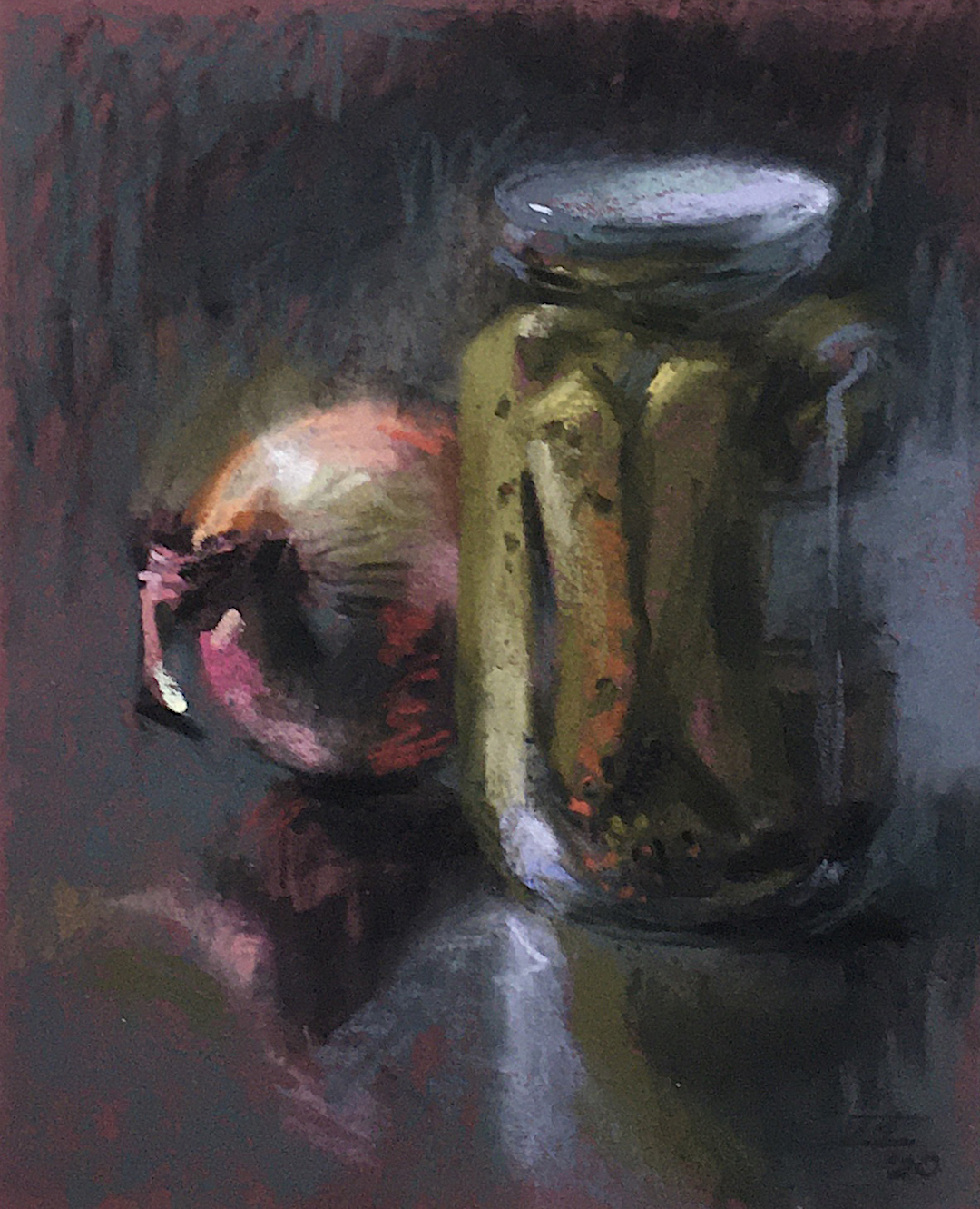 This is the first of Judith's many still-lifes painted in isolation after the "new normal" of "shelter in place" became reality. She simply commented, "Under 2 hours this morning (April 29th) East light, rainy day."