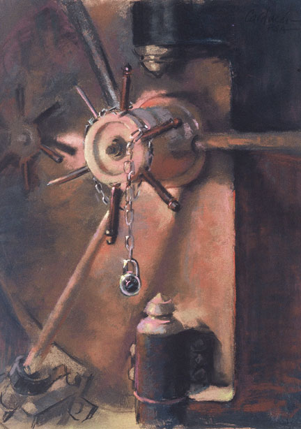 Judy Comments "The patina on this old bank vault, the abstract design, and the puny little combination lock charmed me."