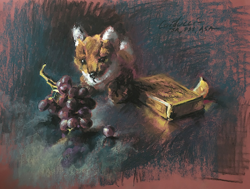 The Fox and the Grapes "Table-top Series" pastel on 10" x 14" Canson MiTeintes Touch paper Contact the artist for price and availability