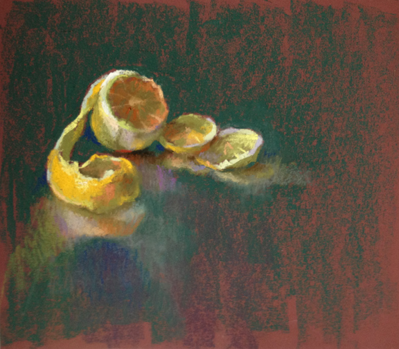 Vanitas :: "Lemon" Pastel on 10.5" x "11" Canson Touch paper Top row L to R: "Alive"," Transit"," Dead" Bottom row L to R: "Lemon","Lobster Cove","Tools"